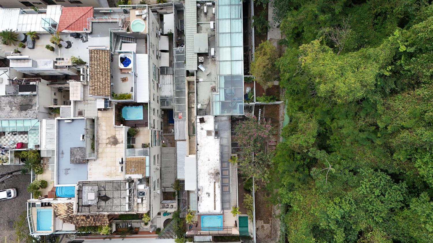2º pavimento: 1 quarto (suíte) e terraço com piscina, churrasqueira e vista direta para o Cristo Redentor.