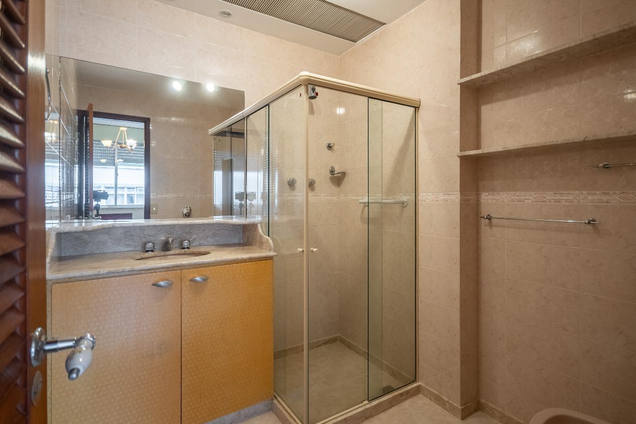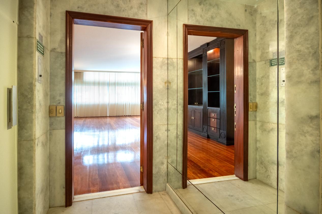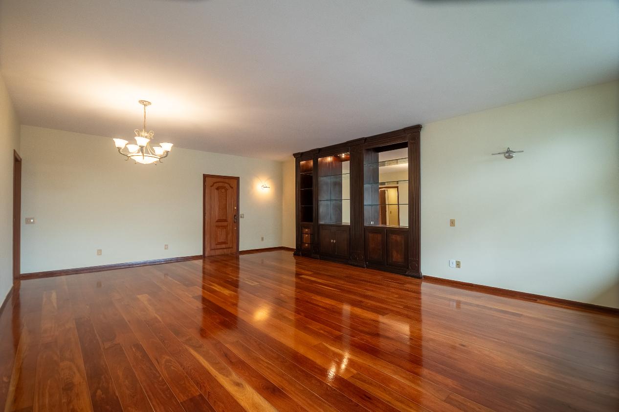 Apartamento com piso em parquet e marcenaria de alto padrão complementam o charme clássico.