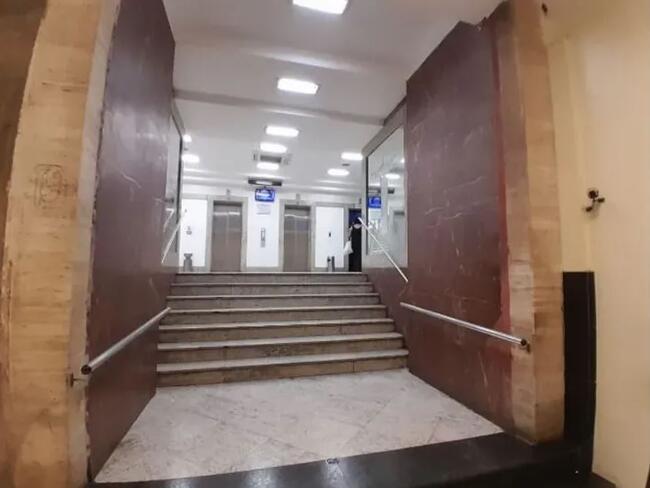 Fachada térrea em mármore bege Bahia, entrada pela lateral esquerda, portão em ferro, corredor de passagem de acesso à portaria com paredes revestidas em mármore, porta em ferro com vidro, escadas com espelhos nas paredes laterais, ?hall? dos elevadores, portaria física, circuito interno de TV, sala de segurança no 2º pavimento, brigada de incêndio, 6 elevadores da marca Fuji, com capacidade para dezesseis passageiros, corredores de circulação e escadas de acesso em mármore.