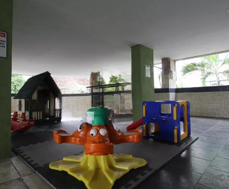Do Condomínio: Trata-se de condomínio de bom padrão construtivo, formado por 2 edifícios que se dividem em 3 blocos, guarnecidos por elevadores, 2 piscinas, quadra poliesportiva, sauna, salão de jogos, churrasqueira, bar, salão de festas, portão automático, fachada revestida por macro pastilhas e guarita de controle de acesso com sistema de interfonia, com vagas cobertas sem marcação e vagas descobertas para visitantes.